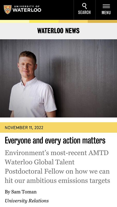 UWaterloo Postdoc Fellowship Story - Everyone and every action matters