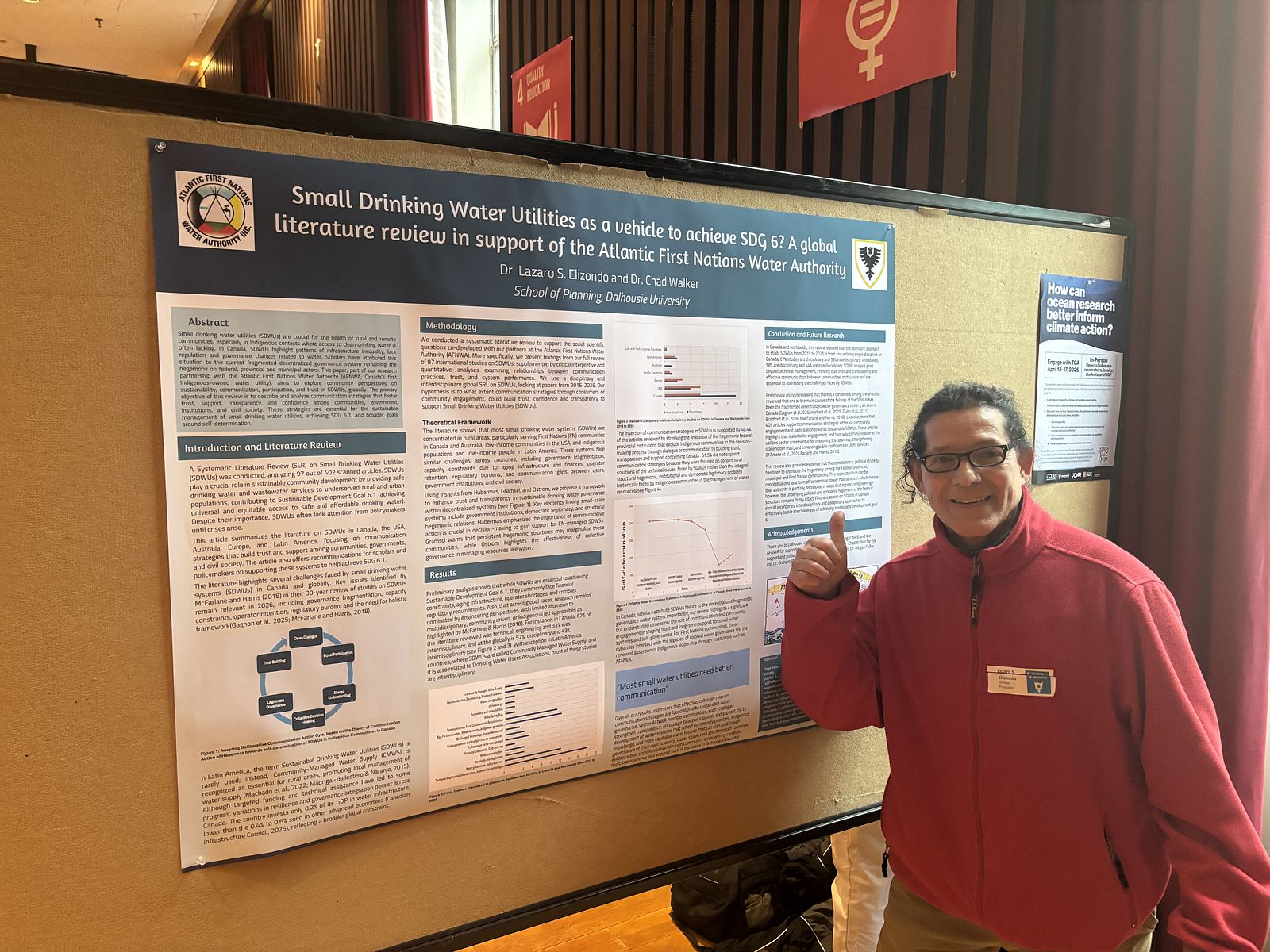 Dr. Sanchez Elizondo at the SDGs Expo, showcasing his research partnership with the Atantic First Nations Water Authority